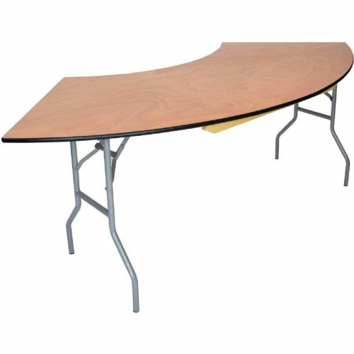 The semi-circular wood folding table allows you to create a serpentine, half circle or full circle table. Create a half circle or full circle by placing two or four tables together from end-to-end. 16 gauge powder coated legs. Seats 2-4 people.