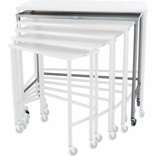 Blickman Nested Instrument Tables with shelves are a space-saving alternative with a unique design that requires only 8 sq. ft. of floor space but yields 31 sq. ft. of usable workspace. They can be ordered individually or as a complete set. All tables travel on three-inch casters.