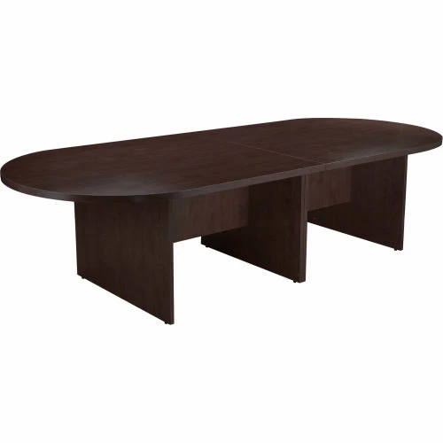 Ten foot racetrack style Mocha laminate conference table. Affords eight people adequate workspace for meetings and other gatherings. Chips in two cartons.