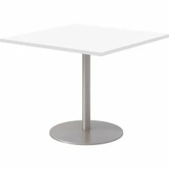 KFI Seating KFI 36" Dining Table & 4 Chair Set, White Table With Navy Chairs