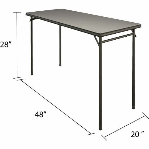 Cosco’s 20″ x 48″ rectangular folding table has a vinyl top and can be used indoors or outdoors. Non marring footcaps protect floor surfaces. Table is lightweight and easy to set up, take down and store. The black color is attractive in all settings. Packs 1 per carton per color.