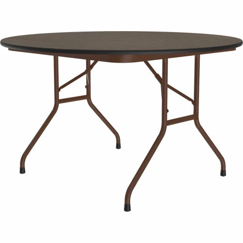 KFI Seating KFI 42" Round Dining Table & Chair Set, Mahogany Table With Black Plastic Chairs