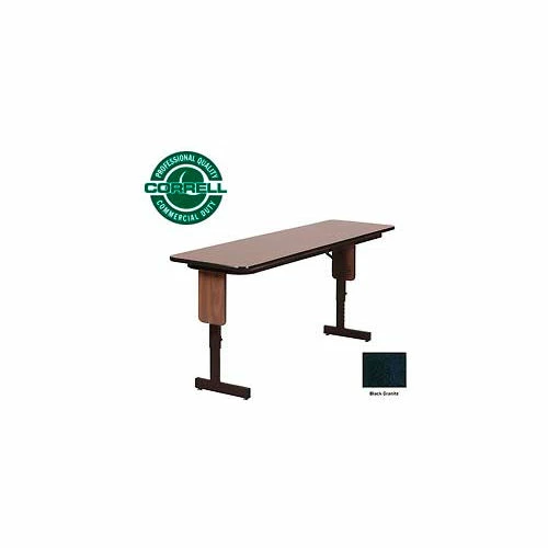 High pressure seminar tables feature a unique panel leg design added appearance and rigidity. Ideal for use in offices, schools, churches, as well as, food service and commercial environments. Table top is made with a high pressure laminate top on 3/4″ high density particle board core and backer sheet. Table has T-mold edging for safety. 1″ x 2″ steel legs are reinforced with a 1-5/8″ steel apron. Legs fold easily with a Knife-Lock mechanism that is attached to the back leg. Legs include non-marring nylon floor glides. Adjustable Height Tables offer 22″ to 30″ adjustable height at 1″ increments.