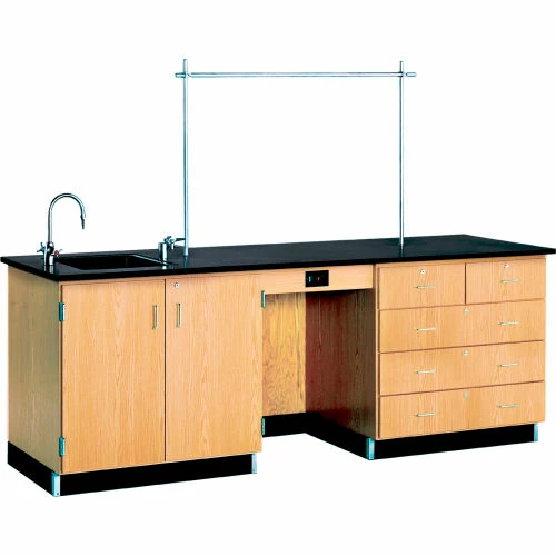Diversified Spaces Science Instructor’s Wooden Desk with Sink – 96″L x 30″W x 36″H