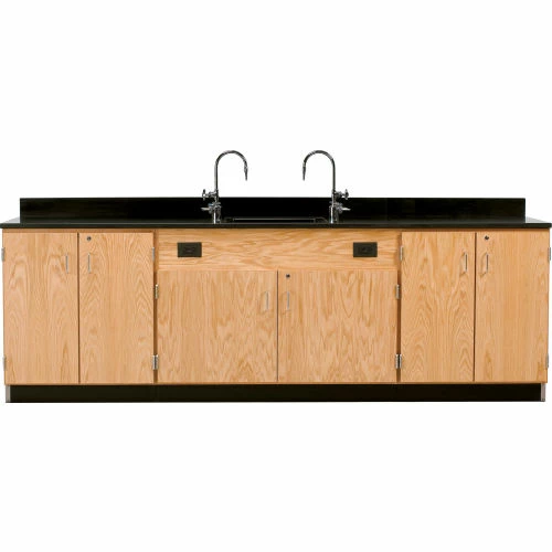 Diversified Spaces Wooden Science Wall Service Workstation with Sink and Drawers Cabinets