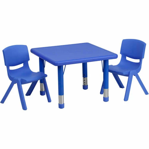 This table set is excellent for early childhood development. Primary colors make learning and play time exciting when several colors are arranged in the classroom. The durable table features a plastic top with steel welding underneath along with height adjustable legs. The chair has been properly designed to fit young children to develop proper sitting habits that will last a lifetime.