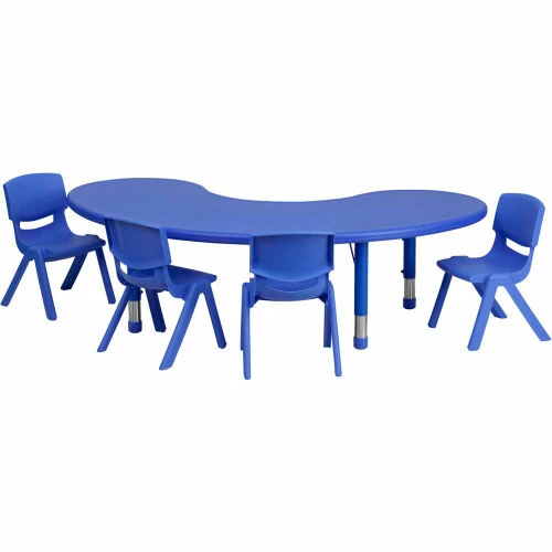 This table set is excellent for early childhood development. Primary colors make learning and play time exciting when several colors are arranged in the classroom. The durable table features a plastic top with steel welding underneath along with height adjustable legs. The chair has been properly designed to fit young children to develop proper sitting habits that will last a lifetime.