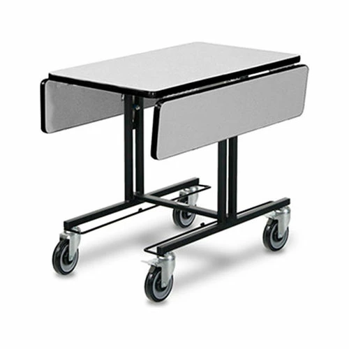 Forbes Room Service Table has a rectangular tabletop – 35-1/2″L x 39″W with 2 bi-fold drop leaves. The Deco Series has a painted steel frame, and fixed vinyl dipped hot box rails.