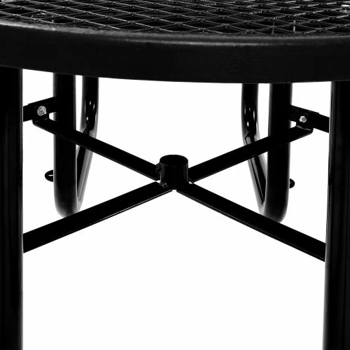 Need a place to kick back outdoors? Provide a place to sit, relax, or eat with The Global Industrial 46″ Round Outdoor Steel Picnic Table in Black. This commercial picnic table is ideal for providing high-traffic areas with seating for a place to sit, such as parks, campuses, school yards, and more. Each table is made using heavy-gauge metal mesh material with a durable thermoplastic coating on both the benches and tabletop with corners that are beveled for safety. This protective coating creates presents a smooth, high-gloss surface that stays cool-to-the-touch, allowing comfortable seating on even the sunniest days. The thermoplastic coating is designed to resist fading, mold, and vandalism; and will also help ensure maintenance-free durability through years of high-traffic usage. Its galvanized steel frame is shielded treated with a zinc-rich black powder coat finish that provides rust-prevention and resilience against the elements. The additional zinc-rich layer also offers an extra superior coating to withstand corrosion in any environment. Mounting tabs allow anchoring to the ground for stability and security. 7-Year Limited Warranty.