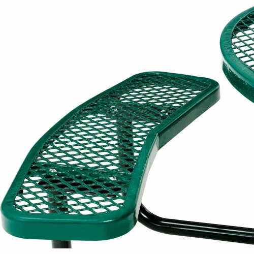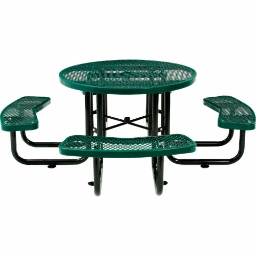 Need a place to kick back outdoors? Provide a place to sit, relax, or eat with The Global Industrial 46″ Round Outdoor Steel Picnic Table in Green. This commercial picnic table is ideal for providing high-traffic areas with seating for a place to sit, such as parks, campuses, school yards, and more. Each table is made using heavy-gauge metal mesh material with a durable thermoplastic coating on both the benches and tabletop with corners that are beveled for safety. This protective coating creates presents a smooth, high-gloss surface that stays cool-to-the-touch, allowing comfortable seating on even the sunniest days. The thermoplastic coating is designed to resist fading, mold, and vandalism; and will also help ensure maintenance-free durability through years of high-traffic usage. Its galvanized steel frame is shielded treated with a zinc-rich black powder coat finish that provides rust-prevention and resilience against the elements. The additional zinc-rich layer also offers an extra superior coating to withstand corrosion in any environment. Mounting tabs allow anchoring to the ground for stability and security. 7-Year Limited Warranty.