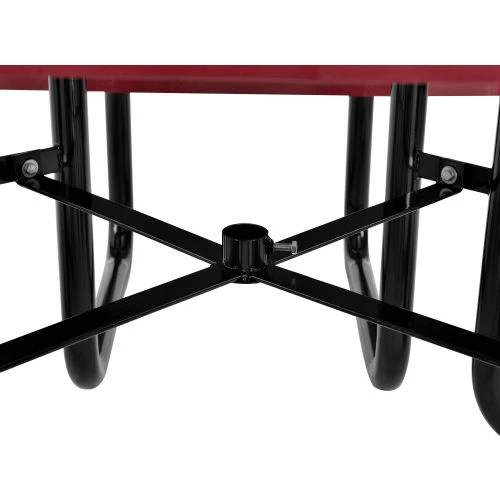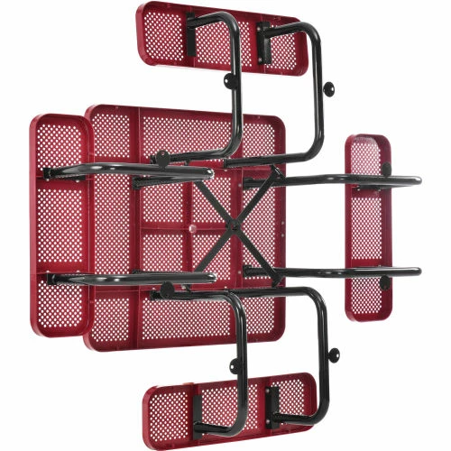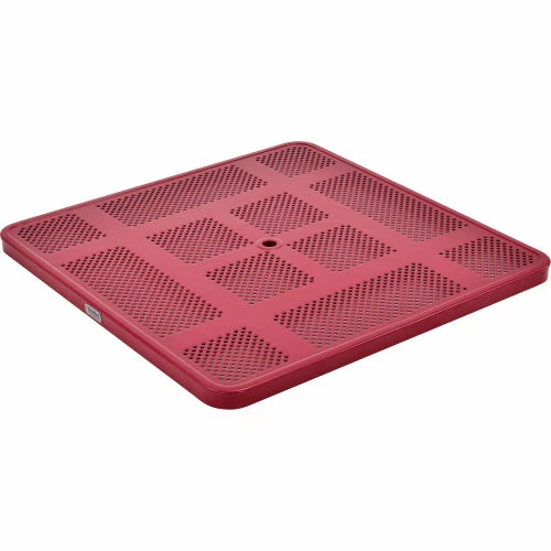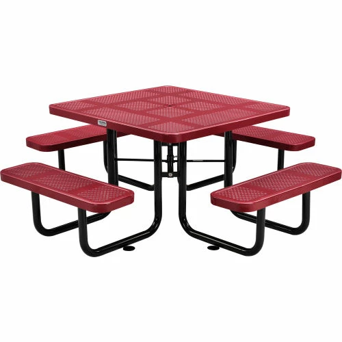 Need a place to kick back outdoors? Provide a place to sit, relax, or eat with The Global Industrial 46″ Square Outdoor Steel Picnic Table in Red. This commercial picnic table is ideal for providing high-traffic areas with seating for a place to sit, such as parks, campuses, school yards, and more. Each table is made using heavy-gauge metal mesh material with a durable thermoplastic coating on both the benches and tabletop with corners that are beveled for safety. This protective coating presents a smooth, high-gloss surface that stays cool-to-the-touch, allowing comfortable seating on even the sunniest days. The thermoplastic coating is designed to resist fading, mold, and vandalism; and will also help ensure maintenance-free durability through years of high-traffic usage. Its galvanized steel frame is shielded treated with a zinc-rich black powder coat finish that provides rust-prevention and resilience against the elements. The additional zinc-rich layer also offers an extra superior coating to withstand corrosion in any environment. Perforated metal material ensures the table is able to retain structural integrity throughout use. Mounting tabs allow anchoring to the ground for stability and security. 7-Year Limited Warranty.