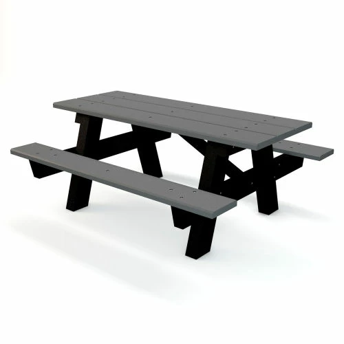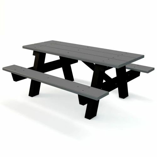 Recycled plastic saves trees and reduces landfill usage. Many forms of post customer waste, such as plastic milk jugs, are the main ingredients in the eco-durable, long lasting Recycled Plastic Material. This table does not need to be sealed, painted or stained and cannot rot. The proprietary coloring process seals in color and is uniform throughout the material with the introduction of our unique UV Protection Phase and ensures the beauty of the plastic well beyond wood, metal or expanded steel. Paint will not bond to the surface and can be easily removed with sand paper or automotive paint thinner. Adding Recycled Plastic Picnic Tables to your park, business or project lets your community know you are taking steps to help preserve our earth’s resources.