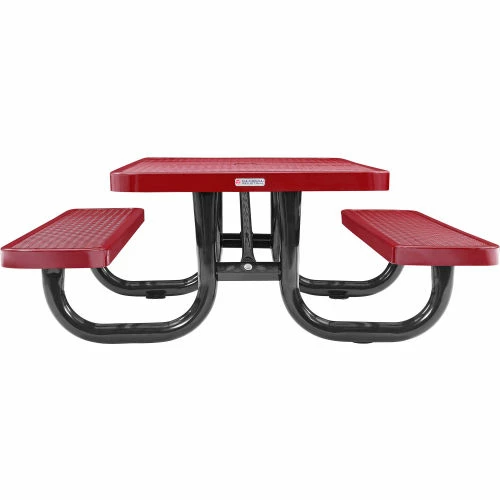 Global Industrial Kids Outdoor Picnic Tables are ideal for schools, playgrounds, and other outdoor areas. Made using heavy-gauge metal mesh with a durable thermoplastic coating on benches and table top. This protective coating creates a smooth, high-gloss surface that stays cool to the touch for comfortable seating even in the sun. Thermoplastic coating resists fading, mold and vandalism, and will ensure maintenance-free durability through years of high-traffic usage. Galvanized steel frame is shielded with a black zinc rich, powder coat finish for rust-prevention and resilience against the elements. The additional zinc rich layer provides an extra superior coating to withstand corrosion in any environment. Bench and table corners are beveled for safety. Mounting tabs allow anchoring to ground for stability and security. Table top features an umbrella hole to accept an umbrella with a pole of up to 1-1/2″ diameter. Set screw included to hold umbrella pole in place. 7 Year Limited Warranty.