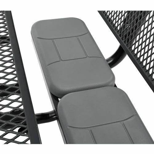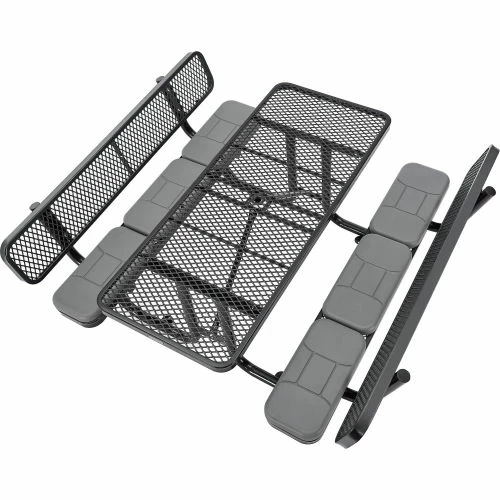Sit back, relax, and eat comfortably with the Global Industrial 6′ Picnic Table with Backrests and Seat Cushions. This commercial picnic table is ideal for high-traffic areas such as parks, campuses, school yards, and more. Each outdoor table is constructed of heavy-gauge metal mesh with beveled corners for added safety. The thermoplastic coating is designed to resist fading, mold, and vandalism; and will also help ensure maintenance-free durability. The table’s protective coating presents a smooth, high-gloss surface that stays cool-to-the-touch, allowing users to sit comfortably on even the hottest days. An additional zinc-rich layer offers an extra superior coating to withstand corrosion in any environment. Mounting tabs allow anchoring to the ground to promote stability and prevent theft. 7-Year Limited Warranty.