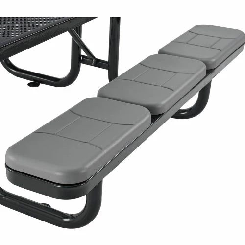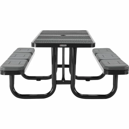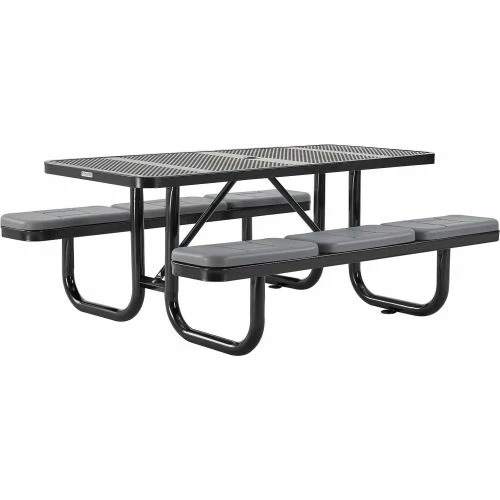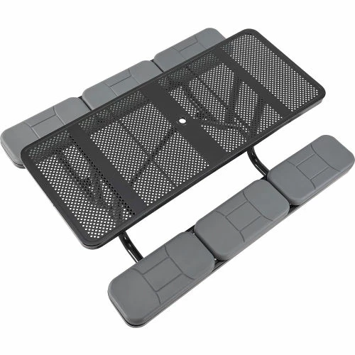 Enjoy the great outdoors more comfortably with the Global Industrial 6′ Rectangular Picnic Table in Perforated Metal. This commercial picnic table is ideal for high-traffic areas such as parks, campuses, school yards, and more. Each outdoor table is constructed of heavy-gauge perforated metal with beveled corners for added safety. The thermoplastic coating is designed to resist fading, mold, and vandalism; and will also help ensure maintenance-free durability. The table’s protective coating presents a smooth, high-gloss surface that stays cool-to-the-touch, allowing users to sit comfortably on even the hottest days. An additional zinc-rich layer offers an extra superior coating to withstand corrosion in any environment. Mounting tabs allow anchoring to the ground to promote stability and prevent theft. 7-Year Limited Warranty.