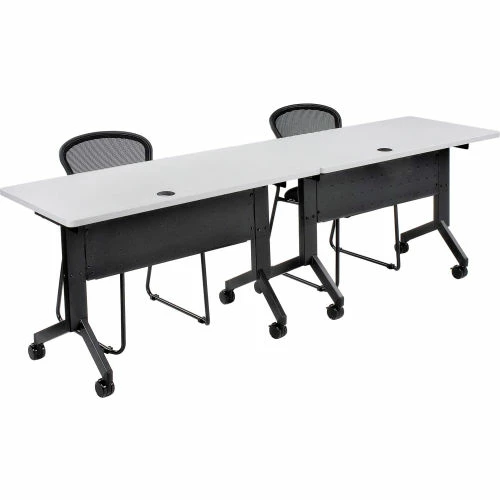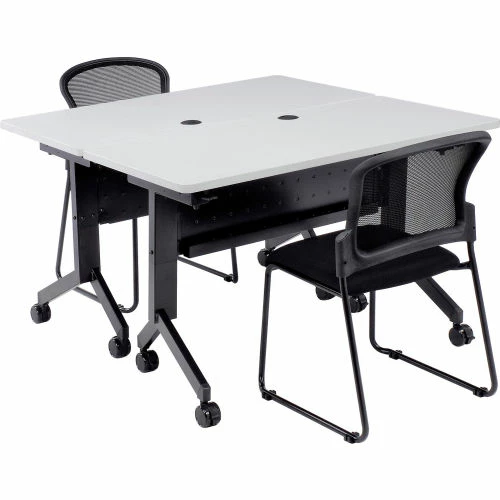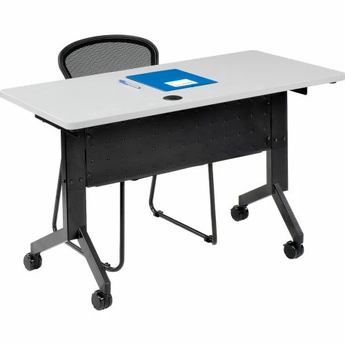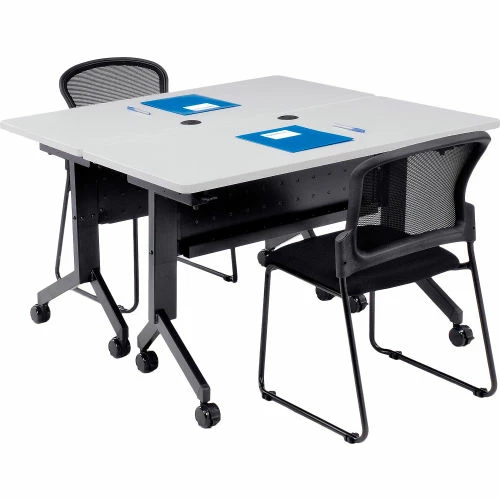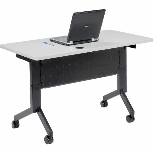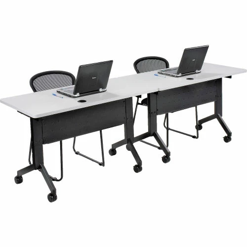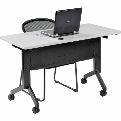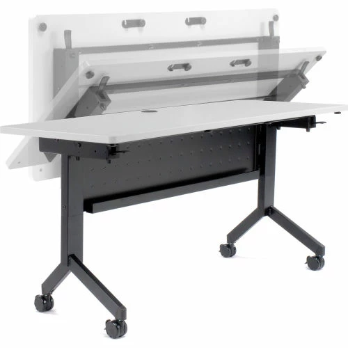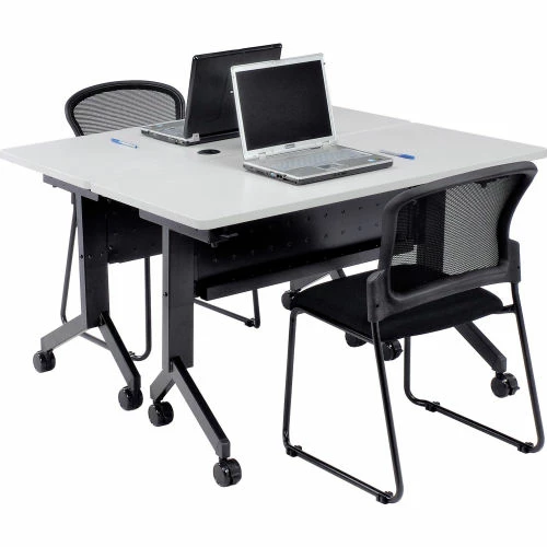 Furnish your workspace with The Interion® Training Table Flip-Top by Global Industrial™, an impressive computer table that’s built to handle a variety of computer setups. Use it to place single laptops or a complete computer setup with dual monitors. The freestanding desk can be placed in conference areas, classrooms, or computer labs. This desk features a laminate construction material for the top, which is more resistant to scratches and scuffs than standard painted wood desks.