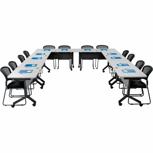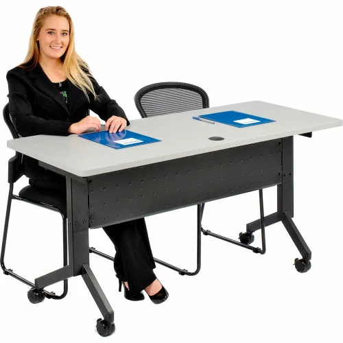 Furnish your workspace with The Interion® Training Table Flip-Top by Global Industrialâ„¢, an impressive computer table that’s built to handle a variety of computer setups. Use it to place single laptops or a complete computer setup with dual monitors. The freestanding desk can be placed in conference areas, classrooms, or computer labs. This desk features a laminate construction material for the top, which is more resistant to scratches and scuffs than standard painted wood desks.