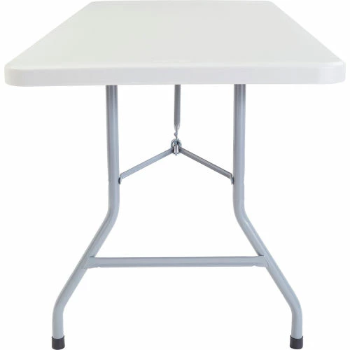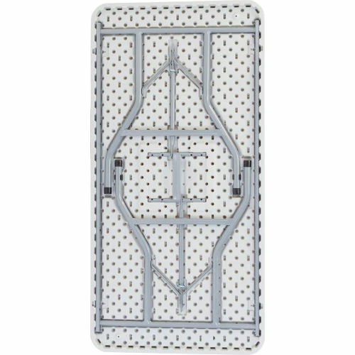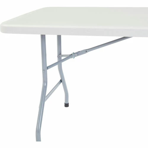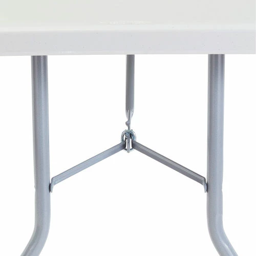 Sturdy enough for permanent use and lightweight enough for temporary needs, this durable table’s legs fold up in seconds for a compact overall storing thickness of only 1-3/4″. The moisture-proof polyethylene top provides ample workspace and is resistant to corrosion and staining. Reinforced heavy-gauge 1-1/8″ steel tube frame and legs for superior stability and strength. Legs lock in both the open and closed position for reliable safety. White top with gray frame. BIFMA tested. Supports evenly distributed weight up to 1,000 lbs. 10 Year Limited Warranty.