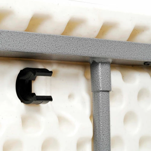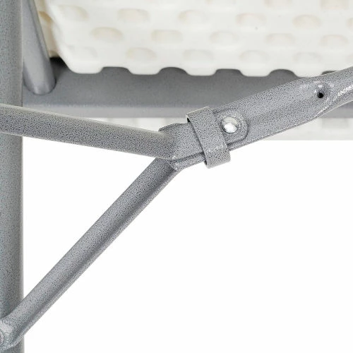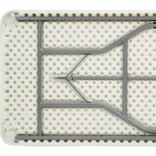 Sturdy enough for permanent use, lightweight enough for temporary needs, this durably made table’s legs fold up in seconds for a compact overall storing thickness of only 1-3/4″. Ample work surface is moisture-proof and corrosion and stain resistant polyethylene. Reinforced heavy-gauge 1-1/8″ steel tube frame and legs for superior stability and strength. Legs lock in both the open and closed position for reliable safety. White top with gray frame. BIFMA tested. Supports evenly distributed weight up to 1,000 lbs. 10 Year Limited Warranty.