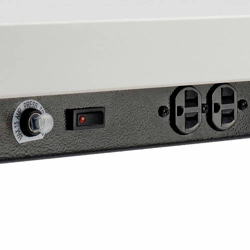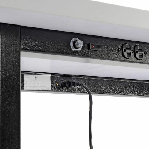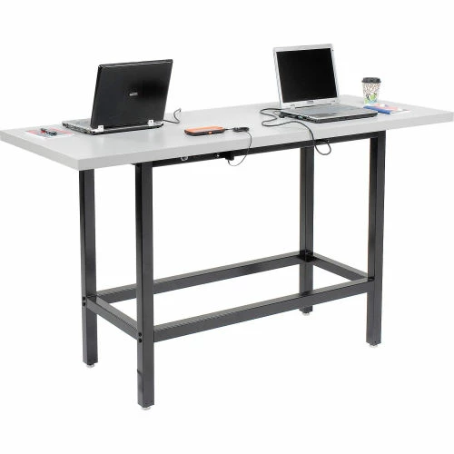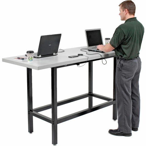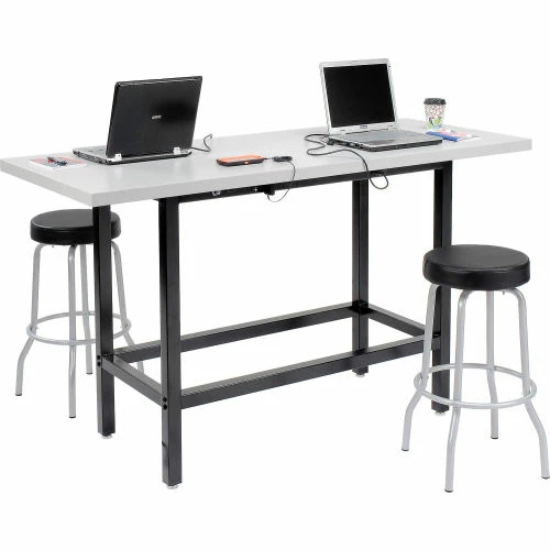 Be more productive during your workday with the Interion® Standing Height Table with Power. This table combines durability with on-the-go productivity with its generous 42″ height, a foot rest, and strong work surface. Users will get years of service from a heavy-duty steel frame supporting an easy to clean bench top made of high-pressure plastic. Ideal for bars, cafés, and a variety of establishments. Charge your laptop, cell-phone and other accessories using the 8 AC power outlets – 2 pairs on each of the long sides of the table. 1-Year Limited Warranty.