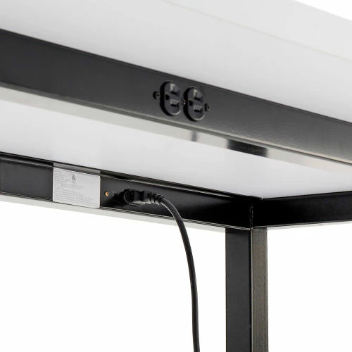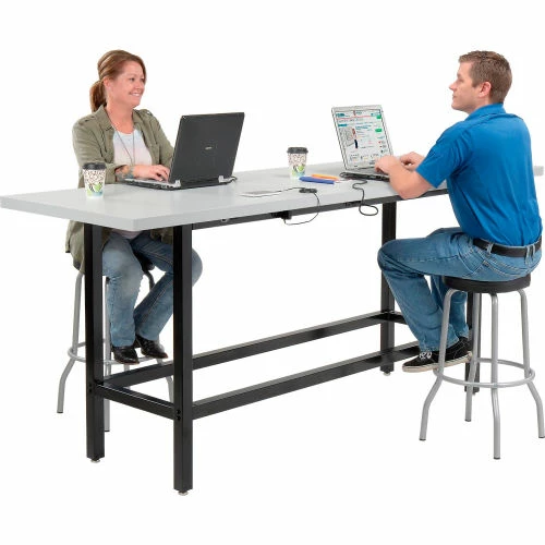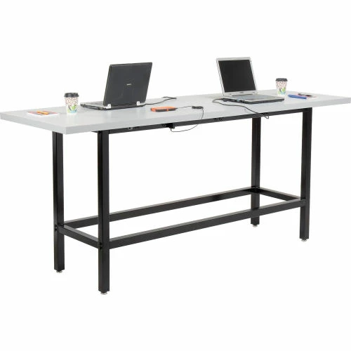Be more productive with the Interion® Standing Height Table with Power. This table combines durability with on-the-go productivity with its generous 42″ height, a foot rest, and strong work surface. Users will get years of service from a heavy-duty steel frame supporting an easy to clean bench top made of high-pressure plastic. Ideal for bars, cafés, and a variety of establishments. Charge your laptop, cell-phone and other accessories using the 12 AC power outlets – three pairs on each of the long sides of the table. 1-Year Limited Warranty.