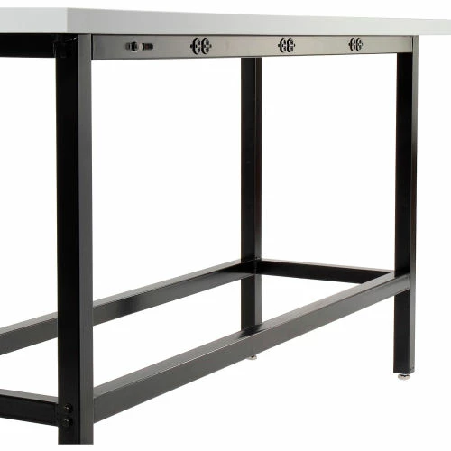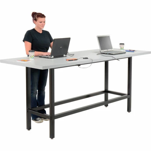 Be more productive with the Interion® Standing Height Table with Power. This table combines durability with on-the-go productivity with its generous 42″ height, a foot rest, and strong work surface. Users will get years of service from a heavy-duty steel frame supporting an easy to clean bench top made of high-pressure plastic. Ideal for bars, cafés, and a variety of establishments. Charge your laptop, cell-phone and other accessories using the 12 AC power outlets – three pairs on each of the long sides of the table. 1-Year Limited Warranty.