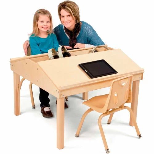 Encourage quiet reading time and proper posture with the Quad Tablet and Reading Table. The ergonomically correct angle is great for tablets, while the built in storage is perfect for books, chargers, and other peripherals.