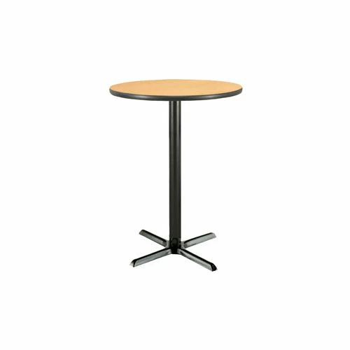 Heavy Duty Bar Height Pedestal Table with High Pressure Laminate Top and Cast Iron Base. Great for Break rooms, Cafeterias and lunchrooms. The pedestal table is 30″ round and is 42″ High to accommodate barstools. It has a 1.25″ thick high pressure laminate top that’s durable and easy to clean. The top has an attractive black T-Mold edge that won’t crack or peel. The solid cast iron X-base has leveling glides to prevent the table from wobbling on uneven floors. The steel has a 3″ diameter and is made of 16 gauge steel. The top and base are all shipped in one box. Easy to assemble.