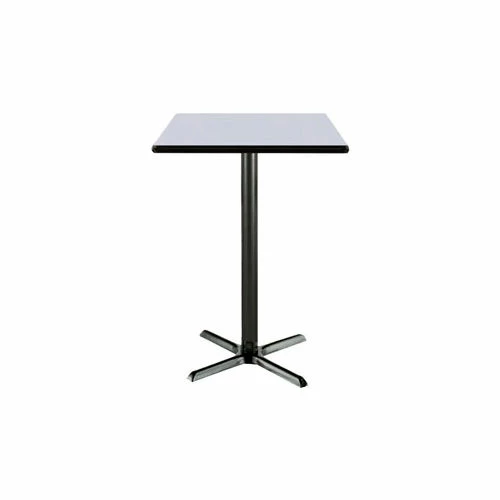Heavy Duty Bar Height Pedestal Table with High Pressure Laminate Top and Cast Iron Base. Great for Break rooms, Cafeterias and lunchrooms. The pedestal table is 36″ Square and is 42″ High to accommodate barstools. It has a 1.25″ thick high pressure laminate top that’s durable and easy to clean. The top has an attractive black T-Mold edge that won’t crack or peel. The solid cast iron X-base has leveling glides to prevent the table from wobbling on uneven floors. The steel has a 3″ diameter and is made of 16 gauge steel. The top and base are all shipped in one box. Easy to assemble.