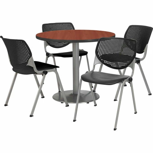 KFI Seating KFI 36" Round Dining Table & Chair Set, Graphite Table With Black Plastic Chairs