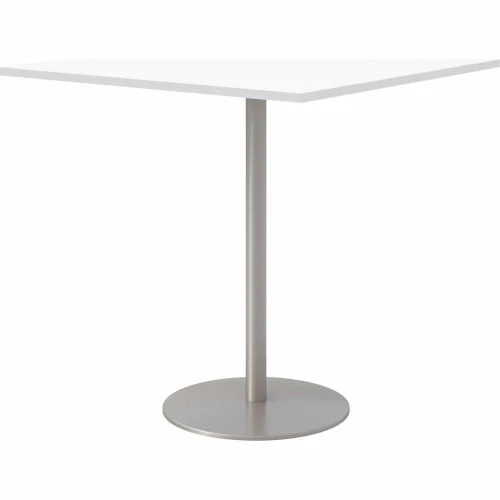 The TFL42SQ is a 42 x 42″ square bar height pedestal table. It has a 1.25″ thick laminate top that’s durable and easy to clean. The top has an attractive 3mm matching edge that won’t crack or peel. The attractive arched steel base has levelling glides to prevent the table from wobbling on uneven floors. The steel has a 3″ diameter and is made of 16-gauge steel. Power option available for center of column. Table is 41″ in Height. The top and base are shipped in one box. Easy to assemble. Made in USA.