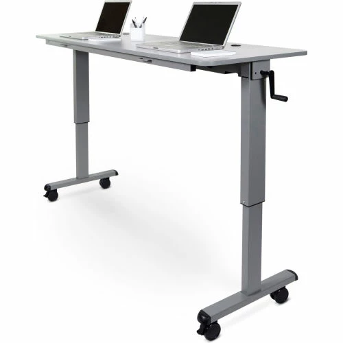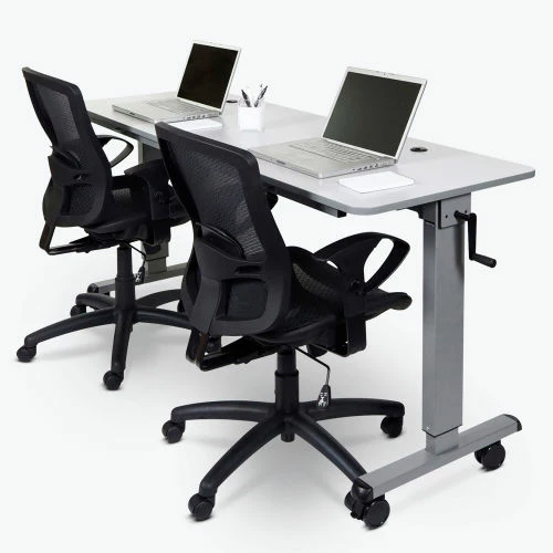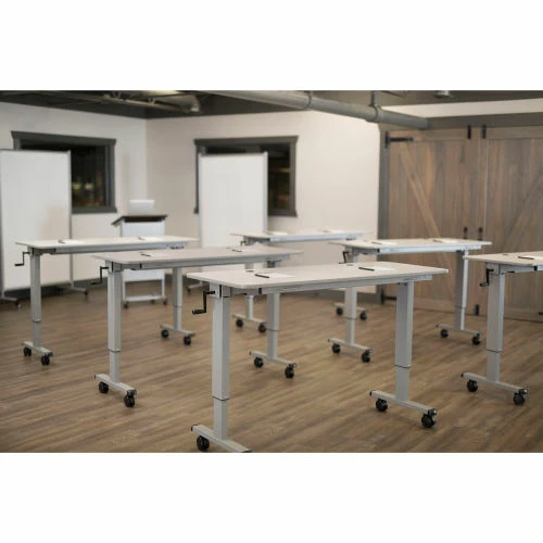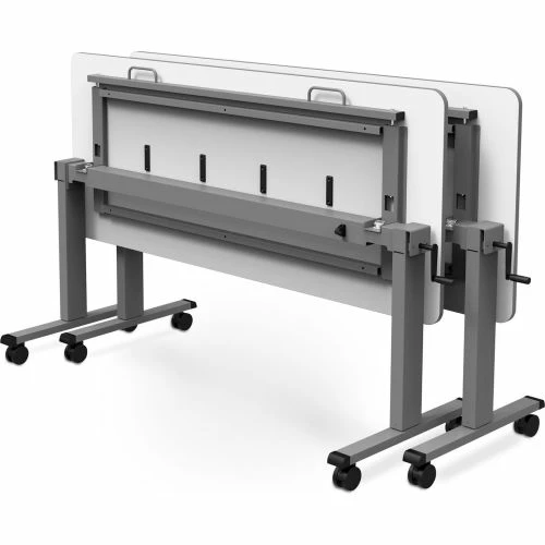 The Luxor flip-top table is a multipurpose sit/stand desk that’s perfect for schools, training rooms or general office use. The convenient crank handle adjusts the table height from 30″ to 42.25″ to accommodate a range of seated or standing users, while 3″ locking casters allow for easy mobility. Adding to its versatility, each table can be neatly folded for space-saving storage using two pull handles that flip the table into a nesting position. Choose the Luxor 60″ Adjustable Flip Top Table to create a professional, ergonomic workspace.