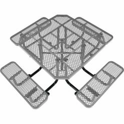 Global Industrial 46" Octagonal Picnic Table, Expanded Metal, Gray