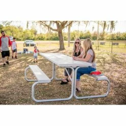 GT Grandstands 10′ Picnic Table w/ Anodized Aluminium Planking and Aluminium Frame, Gray