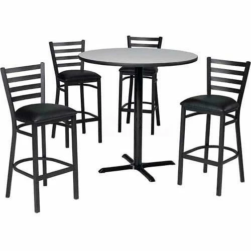 KFI Seating KFI 36" Round Dining Table & Chair Set, Graphite Table With Black Plastic Chairs
