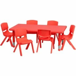 Flash Furniture 47.25" Rectangle Plastic Height Adjustable Activity Table Set with 6 Chairs – Red