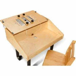 Virco® 48TRAP60 Activity Table w/ Standard Adj. Legs, 60" Trapezoid, Black Frame/Oak Top