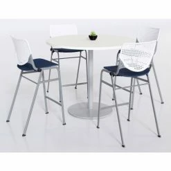 KFI Seating KFI 42" Round Bistro Table & 4 Barstool Set, White Table With Navy Stools