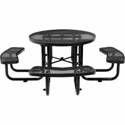 Global Industrial 46" Round Picnic Table, Expanded Metal, Black