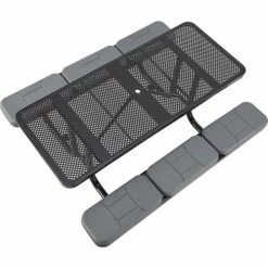 Global Industrial 6′ Rectangular Picnic Table w/ Seat Cushions, Expanded Metal, Black
