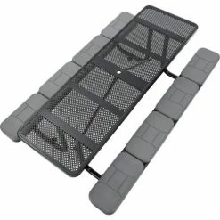 Global Industrial 8′ Rectangular Picnic Table w/ Seat Cushions, Perforated Metal, Black