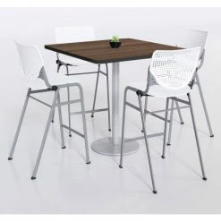 KFI Seating KFI 36" Square Counter Height Restaurant Table, Teak Table/Silver Base